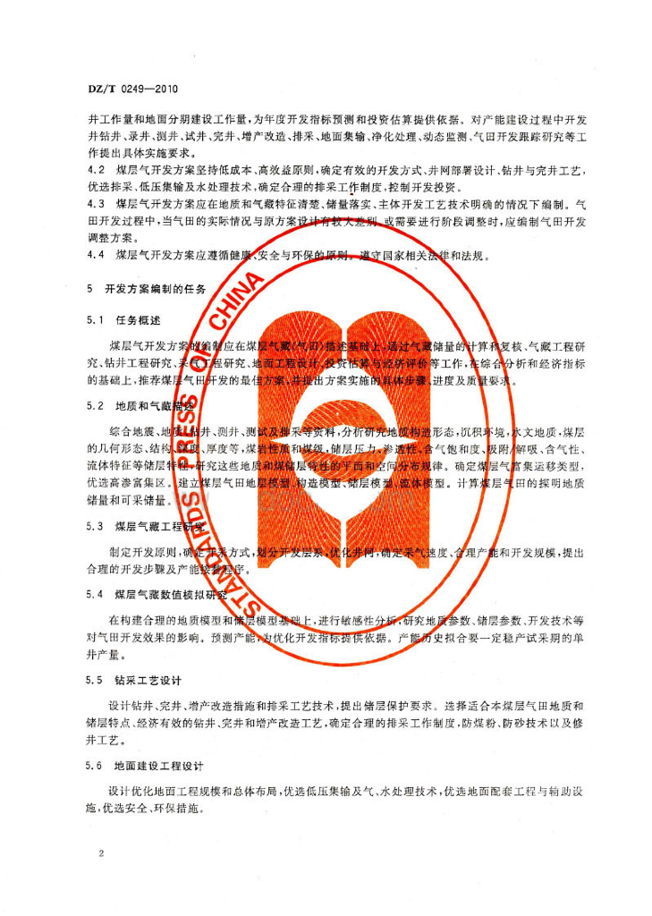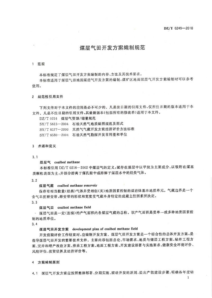 DZ/T 0249-2010 煤层气田开发方案编制规范