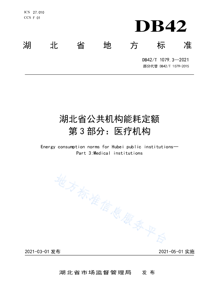 DB42/T 1079.3-2021 湖北省公共机构能耗定额 第3部分:医疗机构