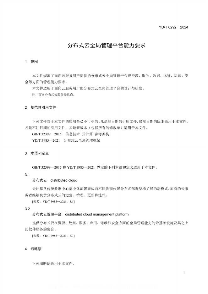 YD/T 6292-2024 分布式云全局管理平台能力要求