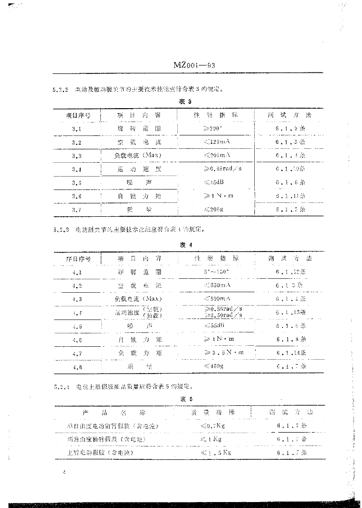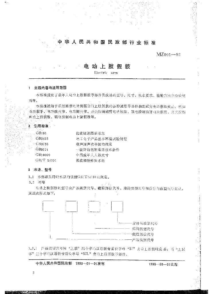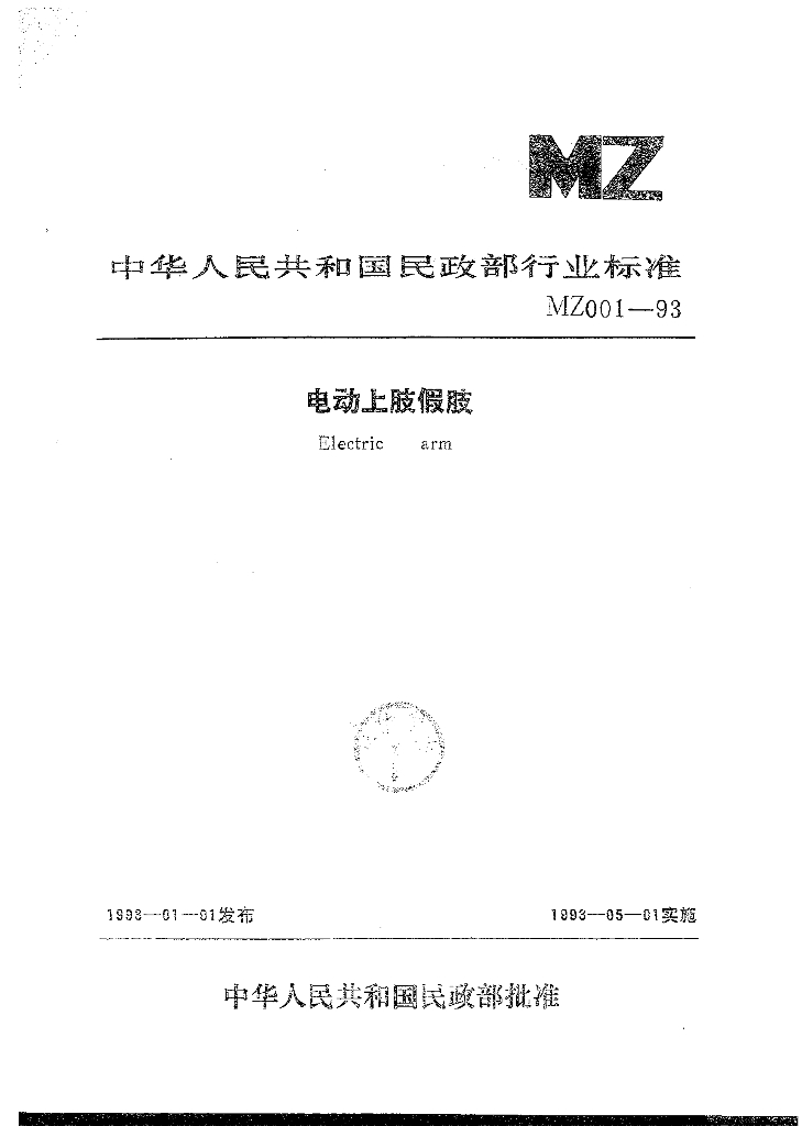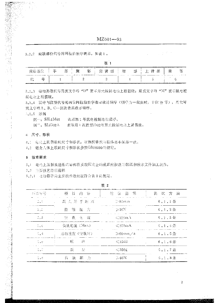 MZ 001-1993 电动假肢上肢