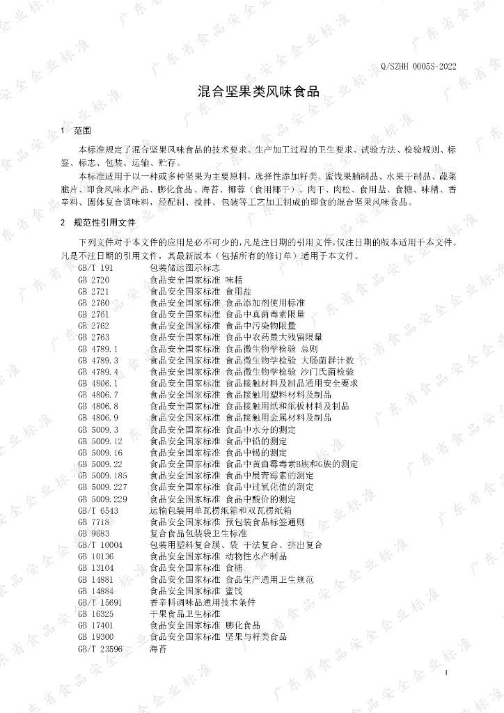 Q/SZHH 0005S-2022 混合坚果类风味食品