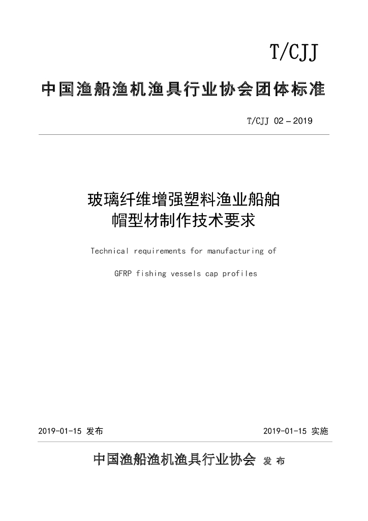T/CJJ 02-2019 玻璃纤维增强塑料渔业船舶 帽型材制作技术要求