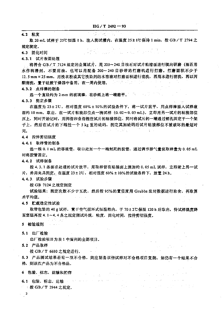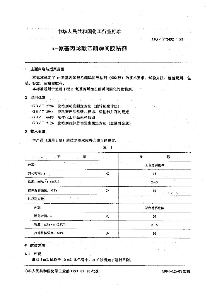 HG/T 2492-1993 α-氰基丙烯酸乙酯瞬间胶粘剂
