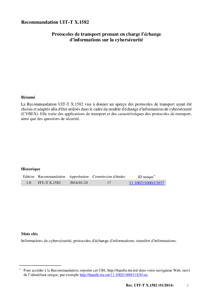 ITU-T X.1582-2014 支持计算机安全信息交换的运输协议