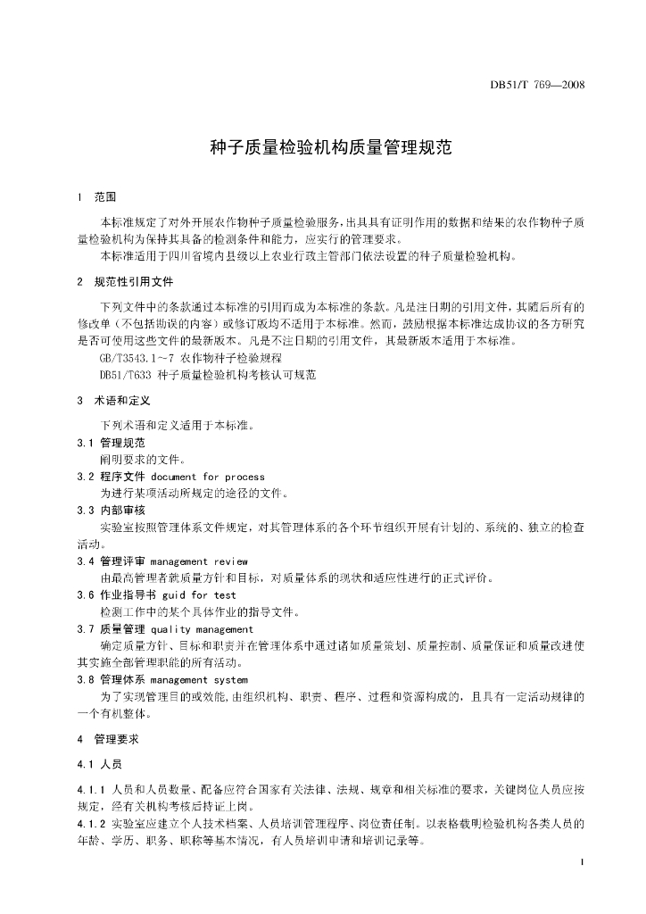 DB51/T 769-2008 种子质量检验机构管理规范