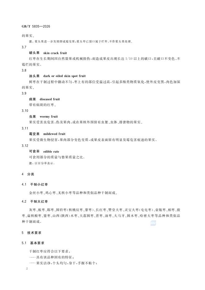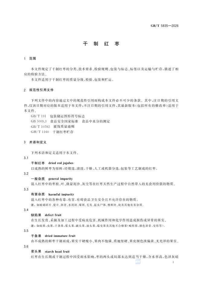 GB/T 5835-2026 干制红枣