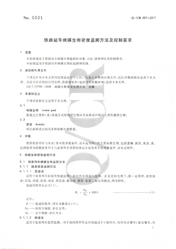 Q/CR 607-2017 铁路站车病媒生物密度监测方法及控制要求