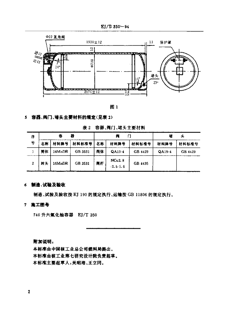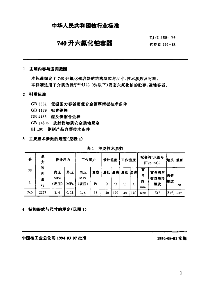 EJ/T 350-1994 740升六氟化铀容器