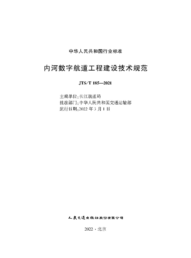JTS/T 185-2021 内河数字航道工程建设技术规范