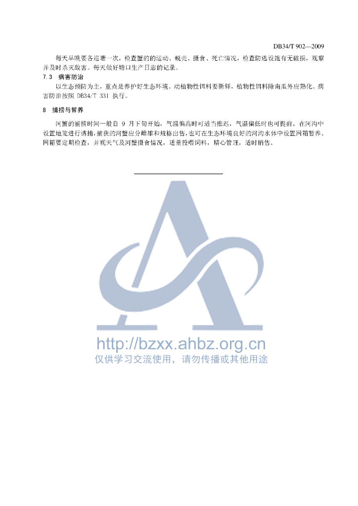 DB34/T 902-2009 无公害河蟹河沟生态养殖技术操作规程