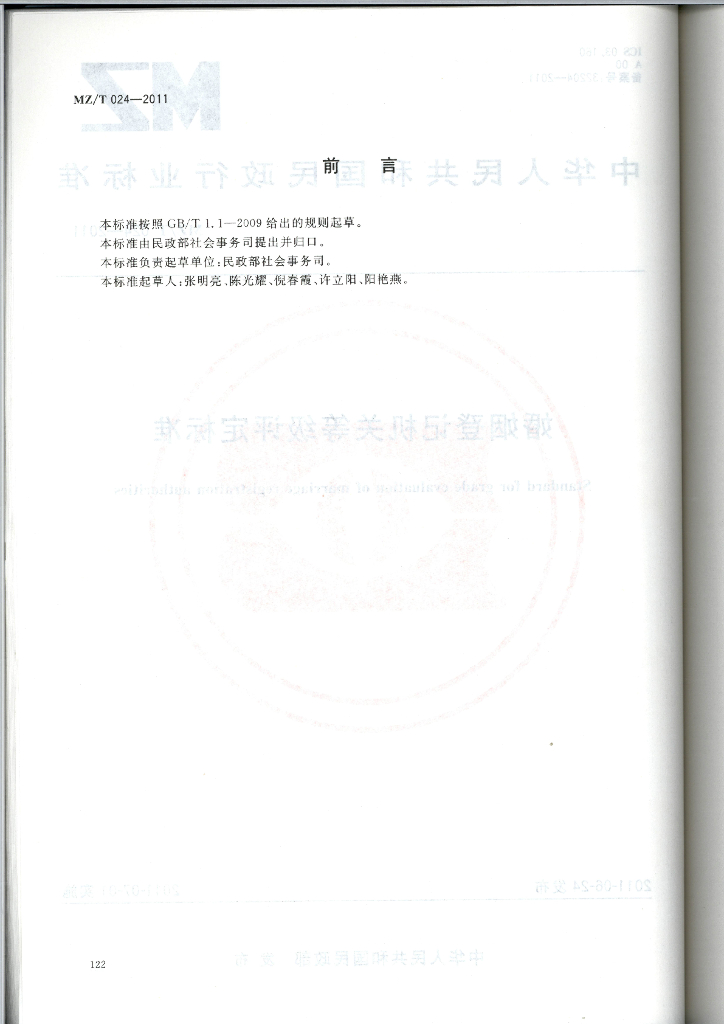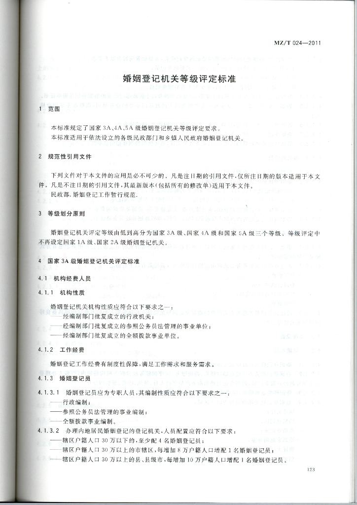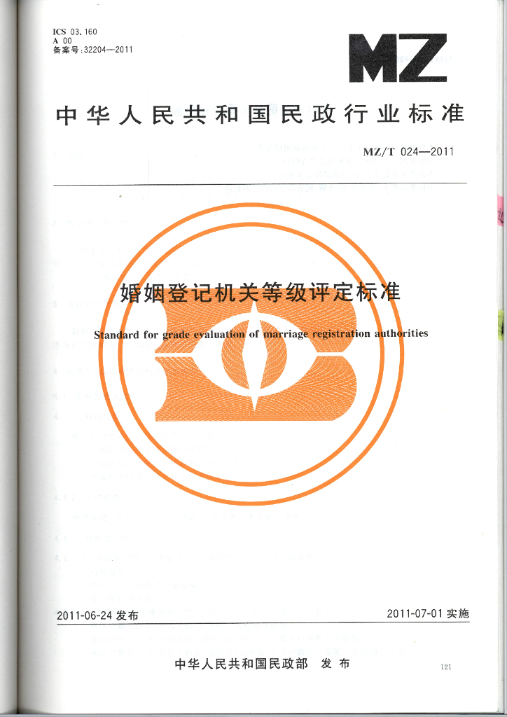 MZ/T 024-2011 婚姻登记机关等级评定标准