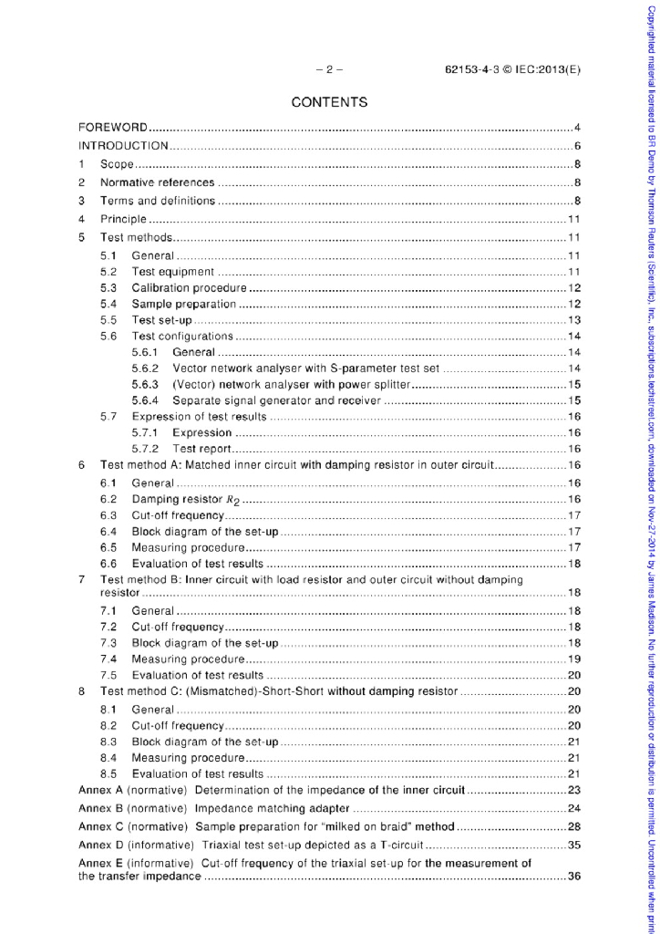 IEC 62153-4-3:2013 金属通信电缆测试方法 第4-3部分:电磁兼容(EMC)-表面转移阻抗-三同轴法