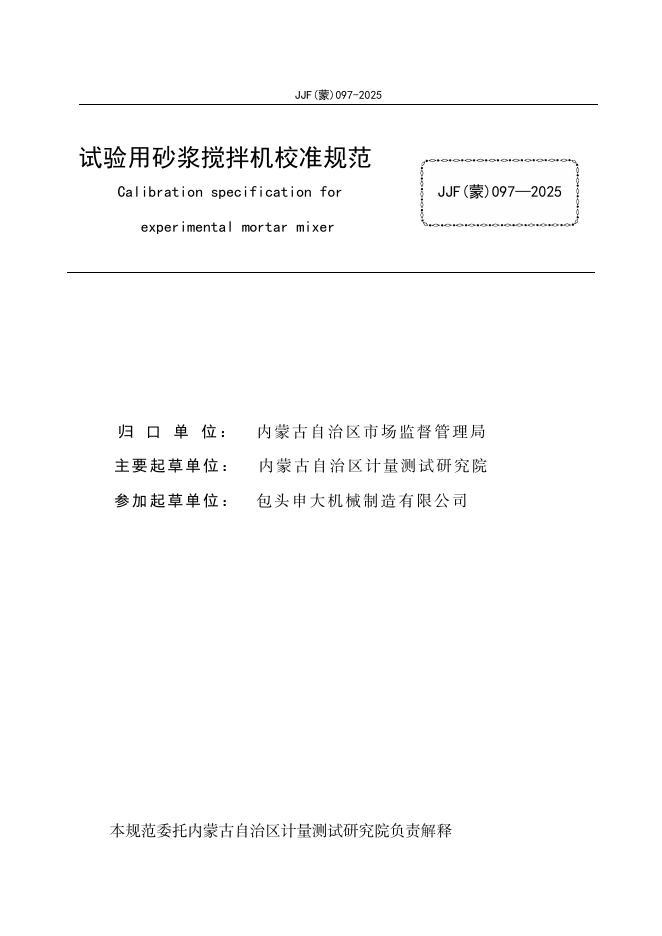JJF(蒙)097-2025 试验用砂浆搅拌机校准规范