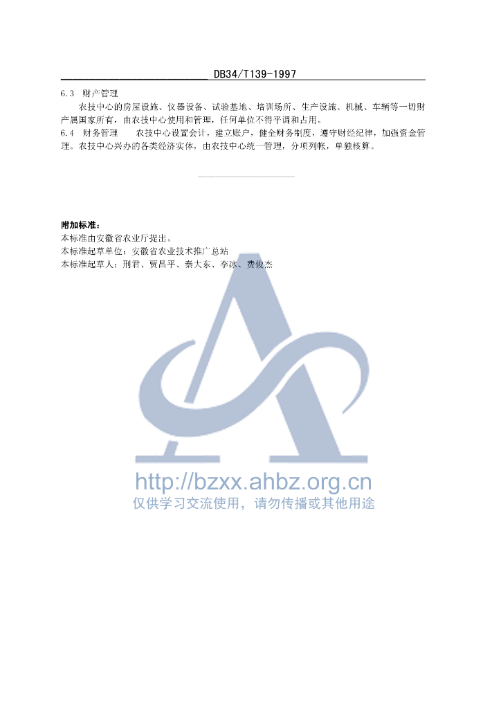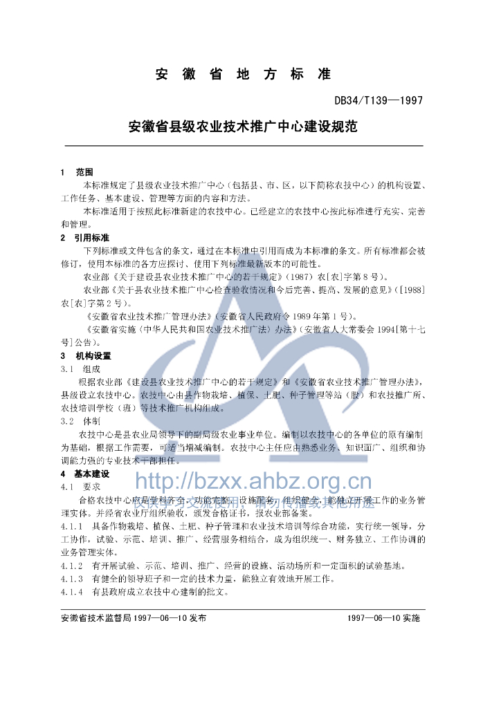 DB34/T 139-1997 安徽省县级农业技术推广中心建设规范