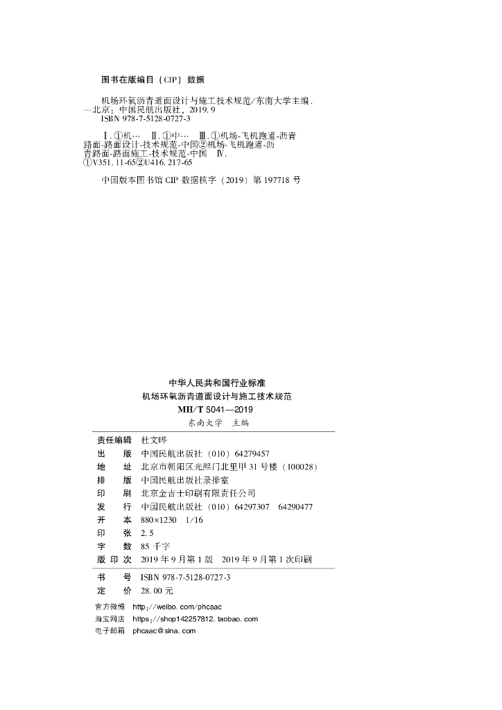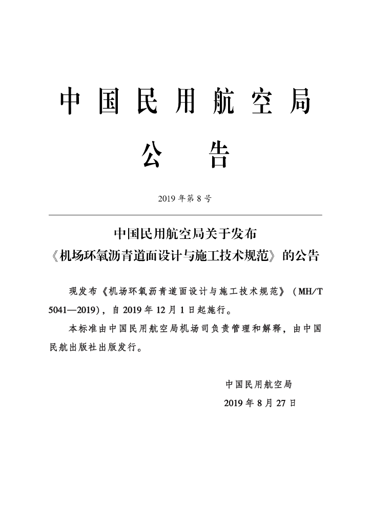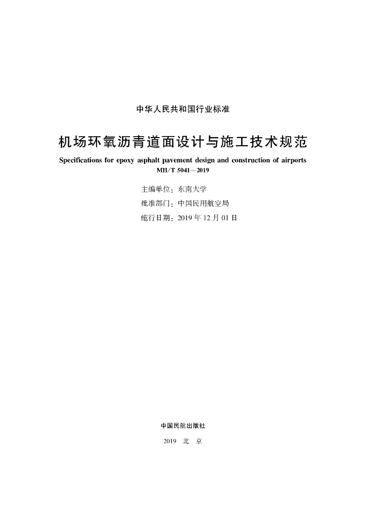 MH/T 5041-2019 机场环氧沥青道面设计与施工技术规范