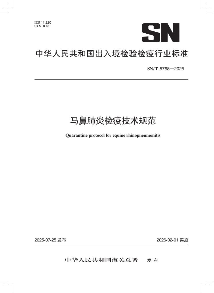 SN/T 5768-2025 马鼻肺炎检疫技术规范