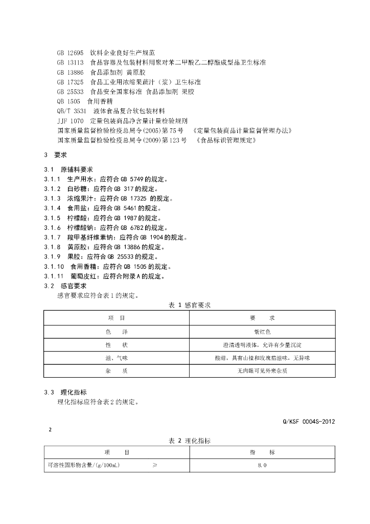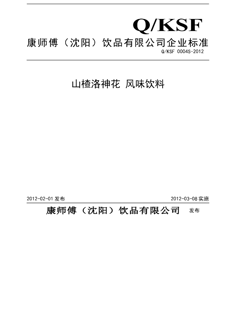 Q/KSF 0004S-2012 山楂洛神花 风味饮料