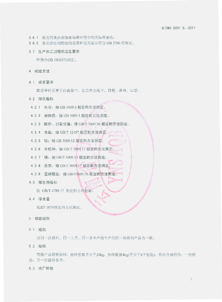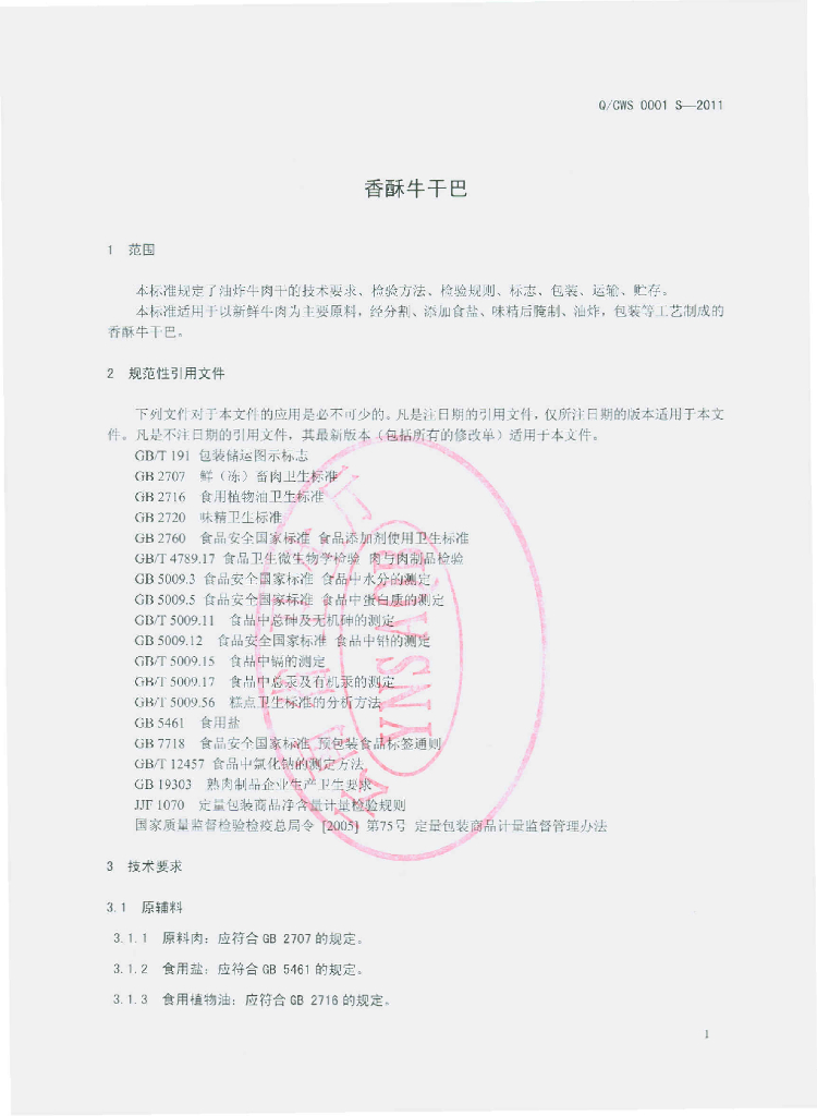 Q/CWS 0001S-2011 香酥牛干巴