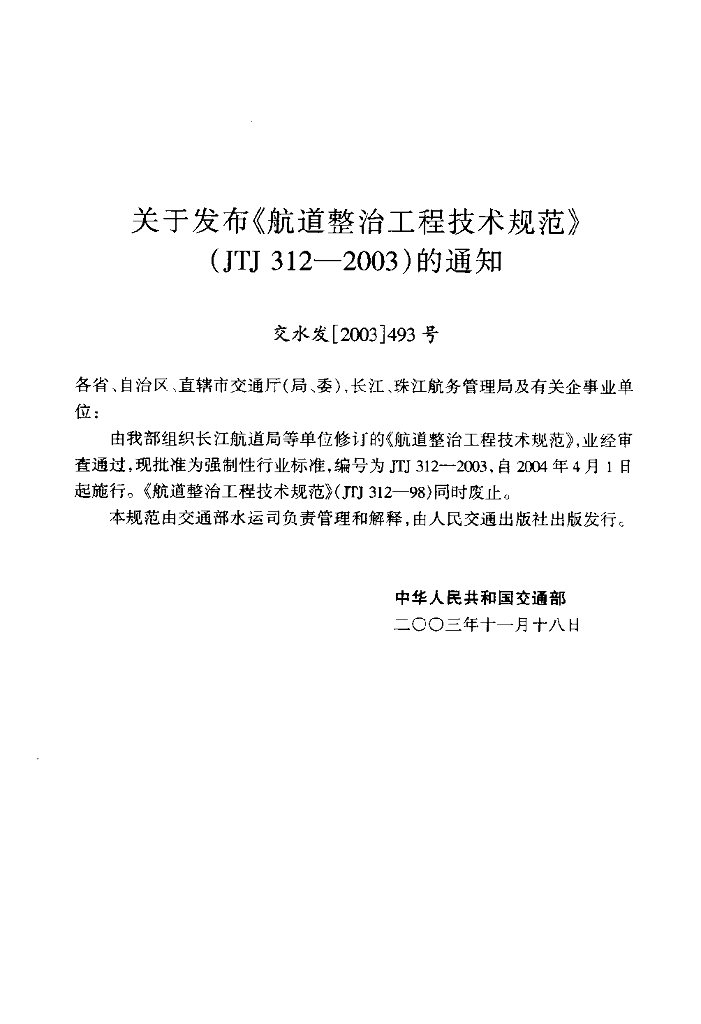 JTJ 312-2003 航道整治工程技术规范