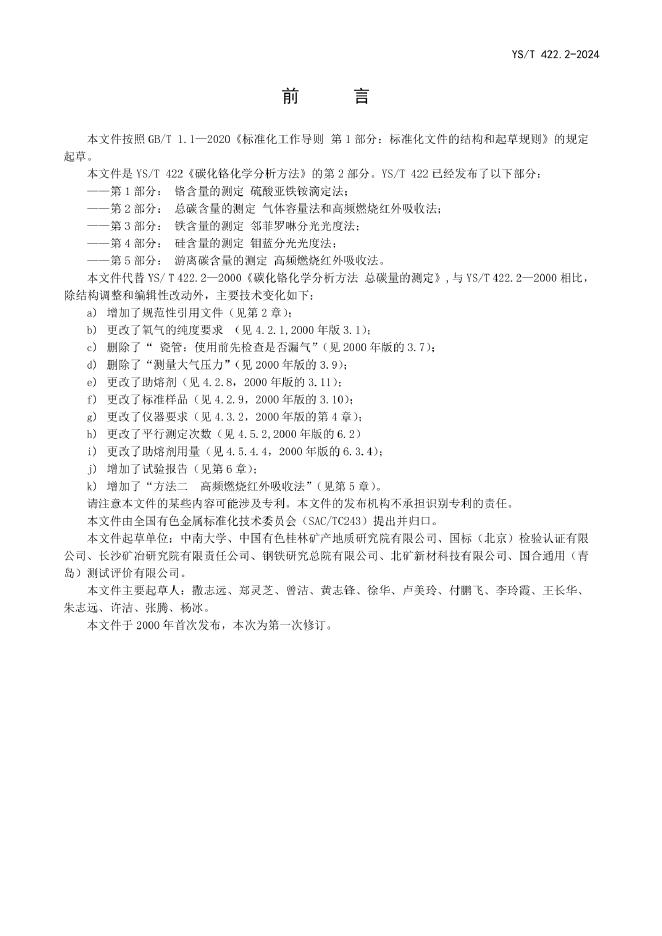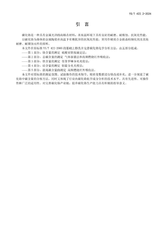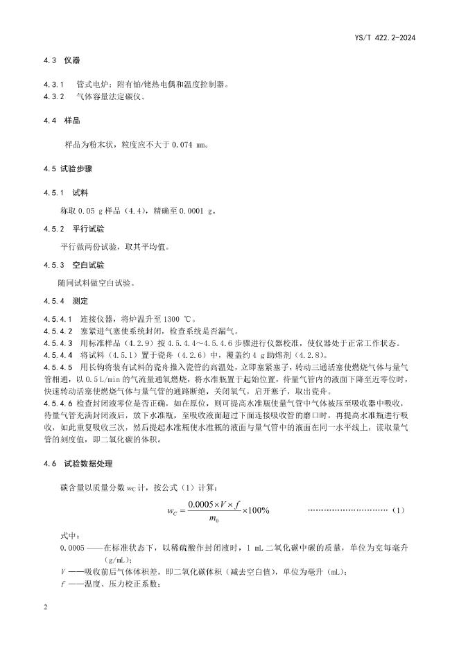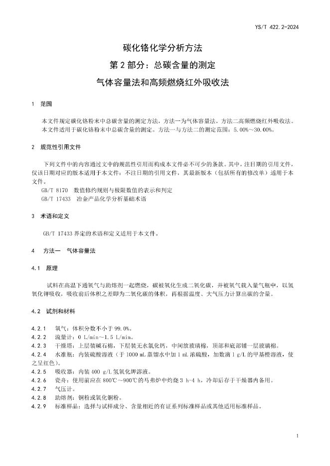 YS/T 422.2-2024 碳化铬化学分析方法 第2部分:总碳含量的测定 气体容量法和高频燃烧红外吸收法