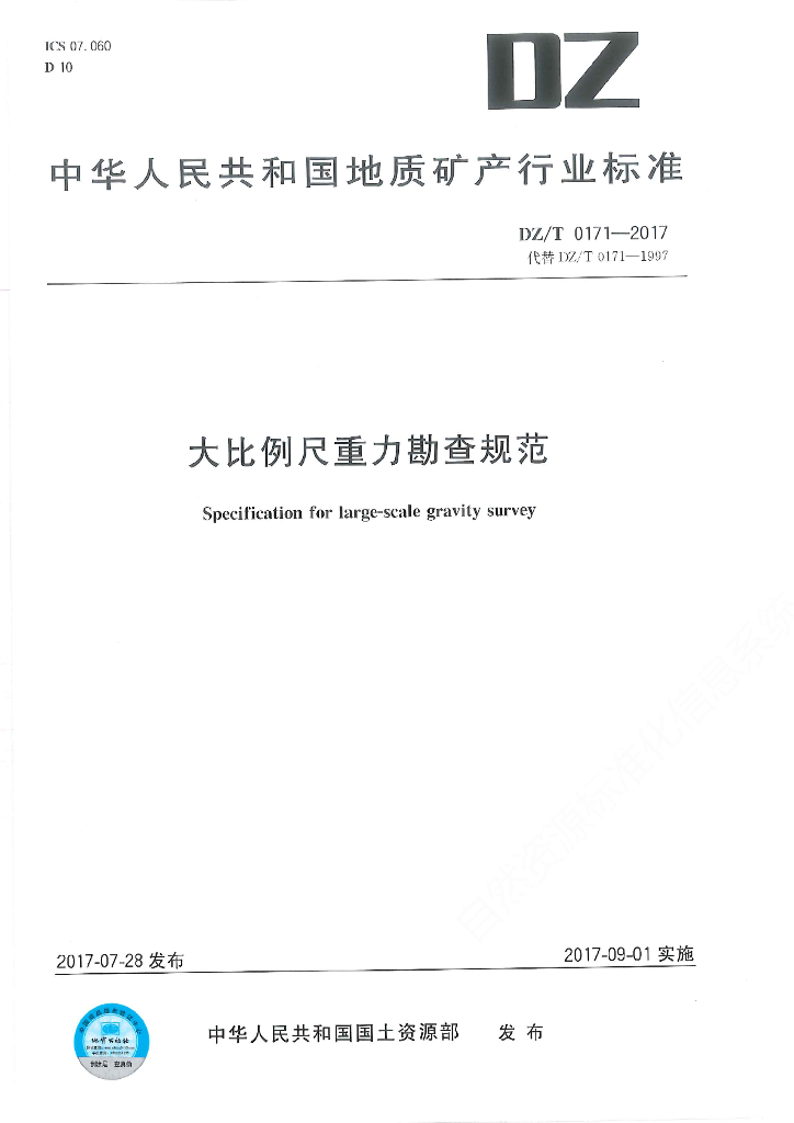 DZ/T 0171-2017 大比例尺重力勘查规范