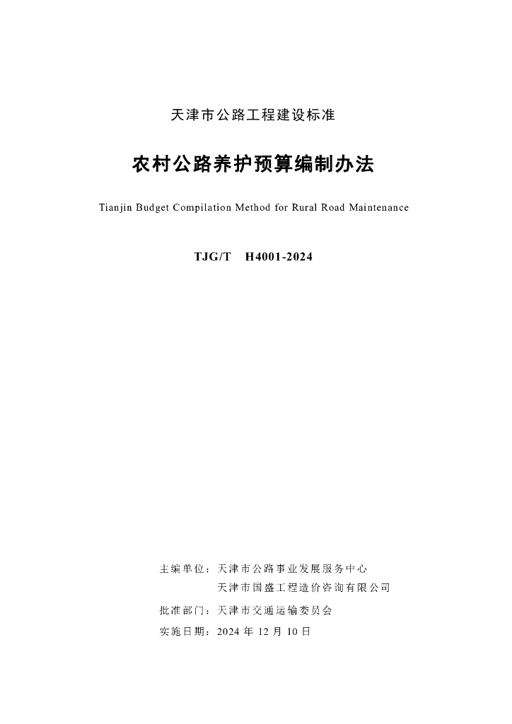 TJG/T H4001-2024 天津市农村公路养护预算编制办法