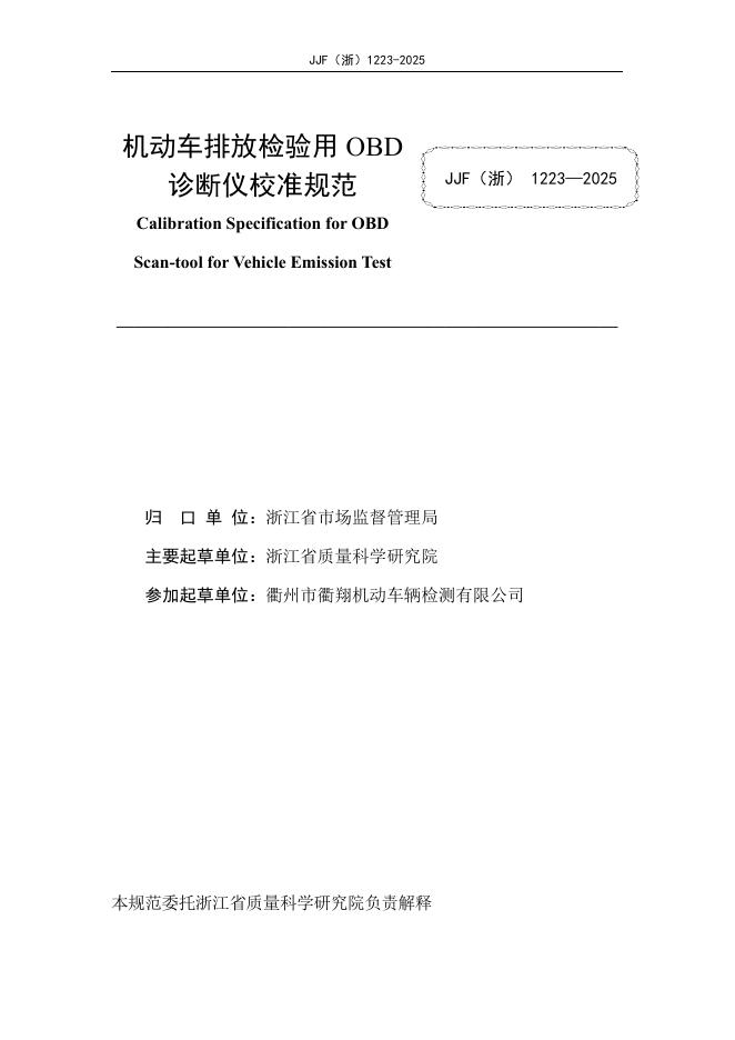 JJF(浙)1223-2025 机动车排放检验用OBD诊断仪校准规范
