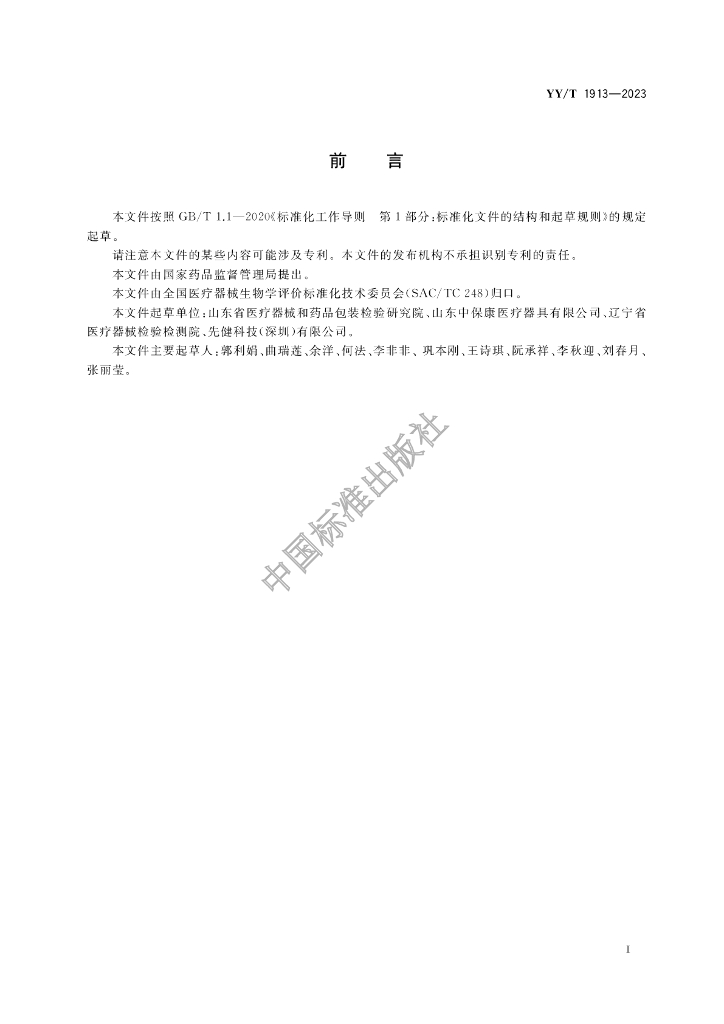 山东省医疗器械和药品包装检验研究院、山东中保康医疗器具有限公司、辽宁省医疗器械检验检测院、先健科技(深圳)有限公司