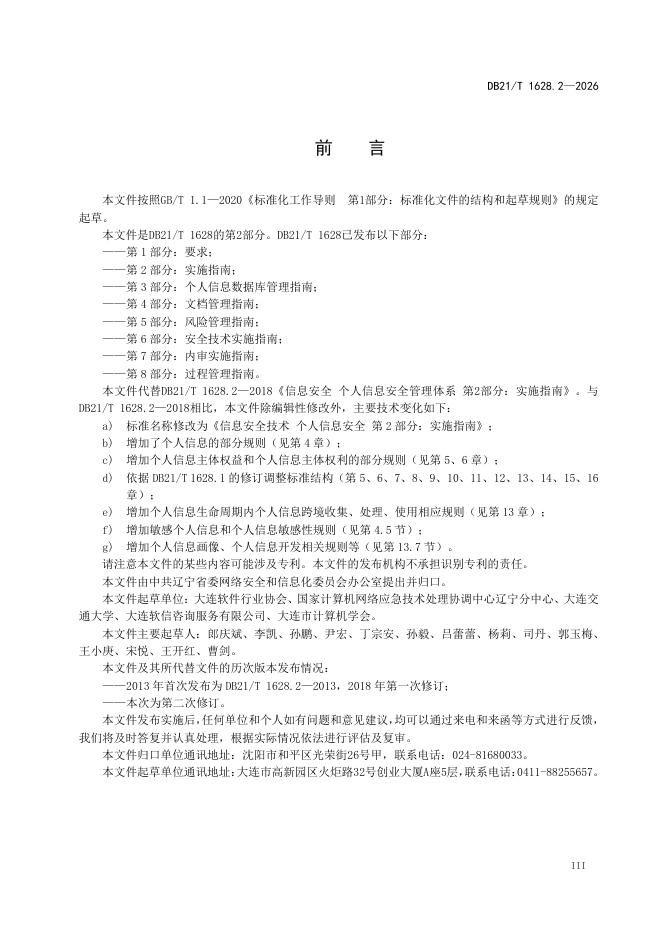 DB21/T 1628.2-2026 信息安全技术 个人信息安全 第2部分:实施指南