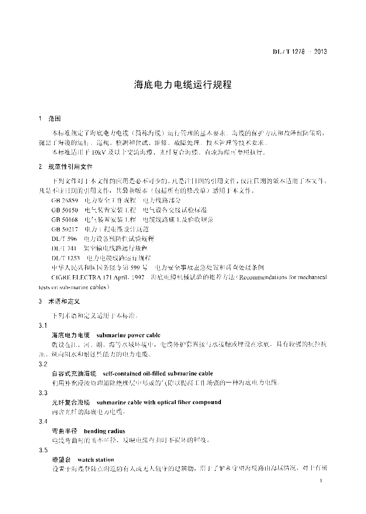 DL/T 1278-2013 海底电力电缆运行规程
