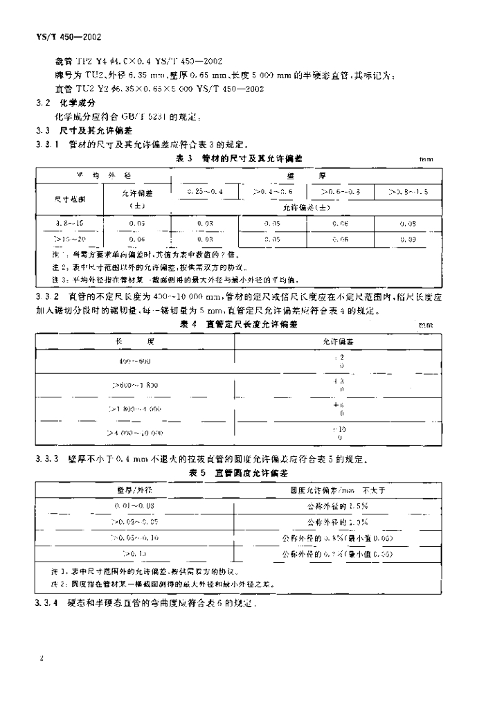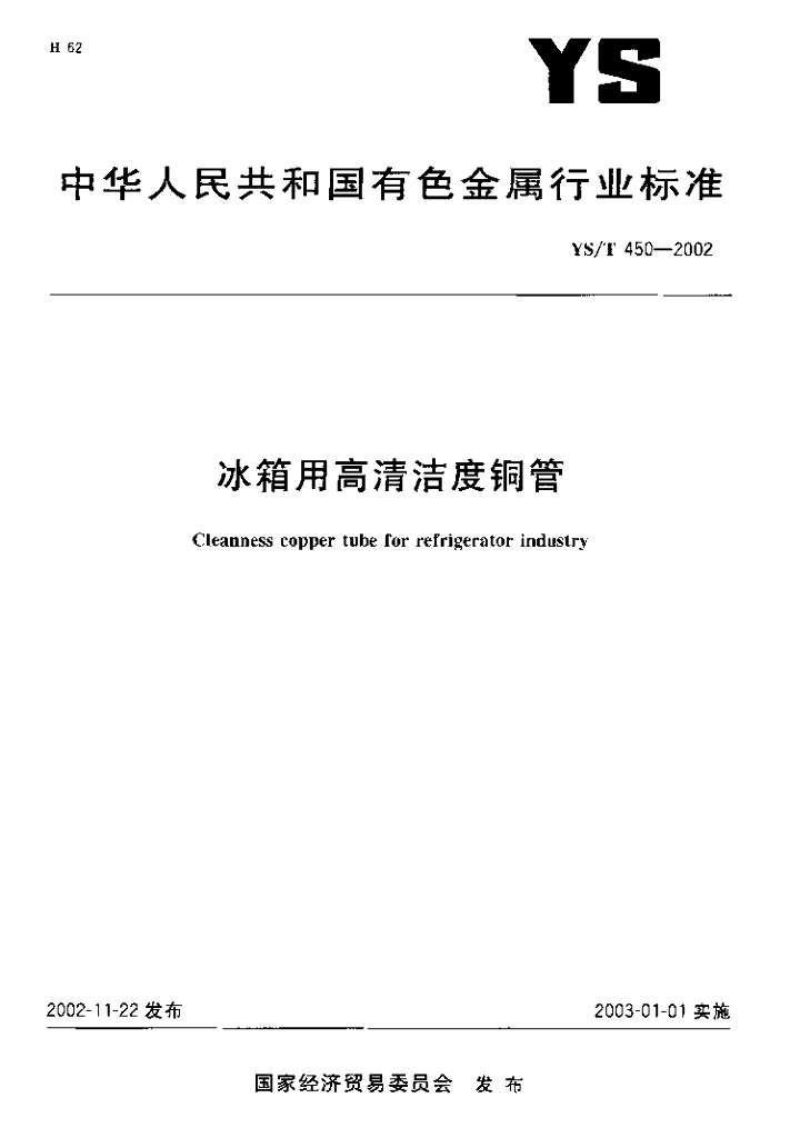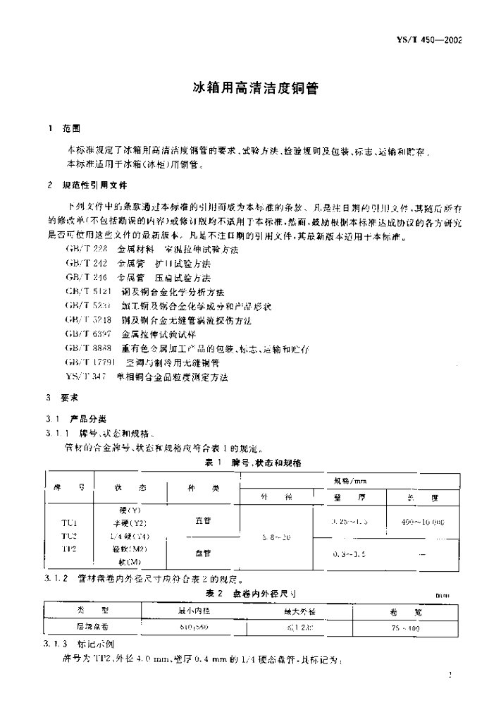 YS/T 450-2002 冰箱用高清洁度铜管