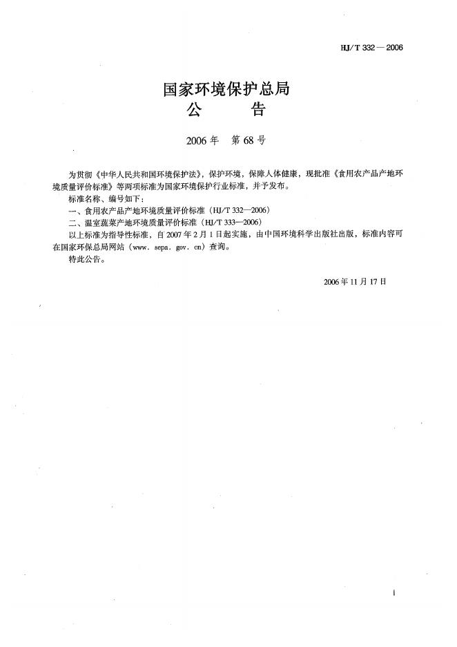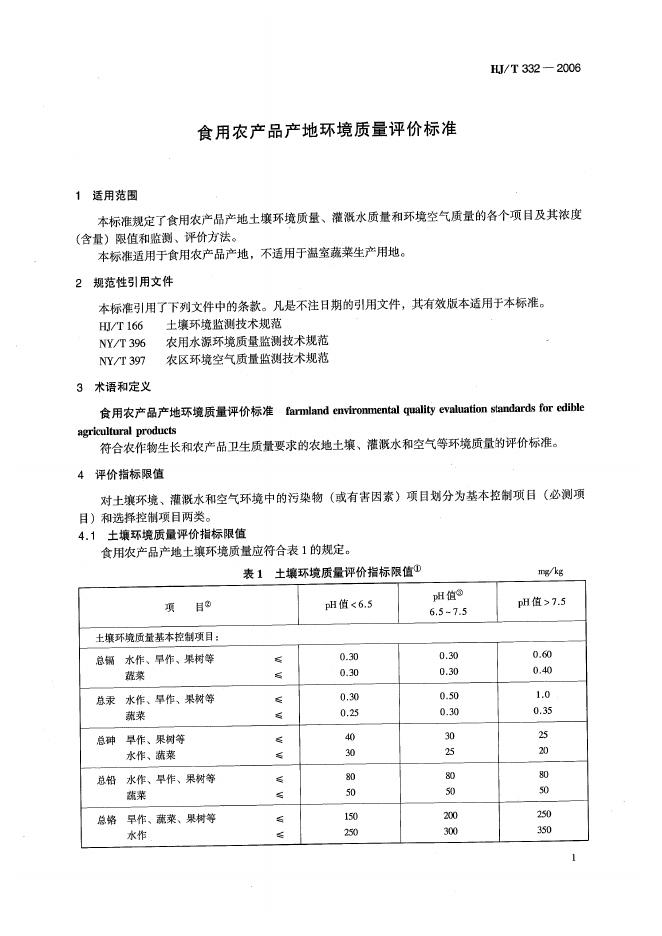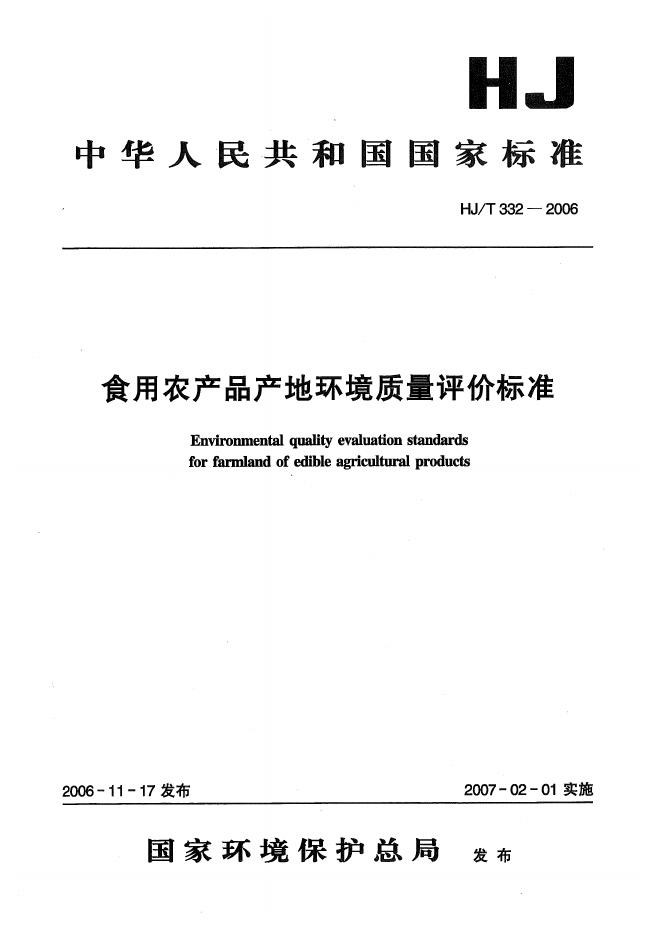 HJ 332-2006 食用农产品产地环境质量评价标准