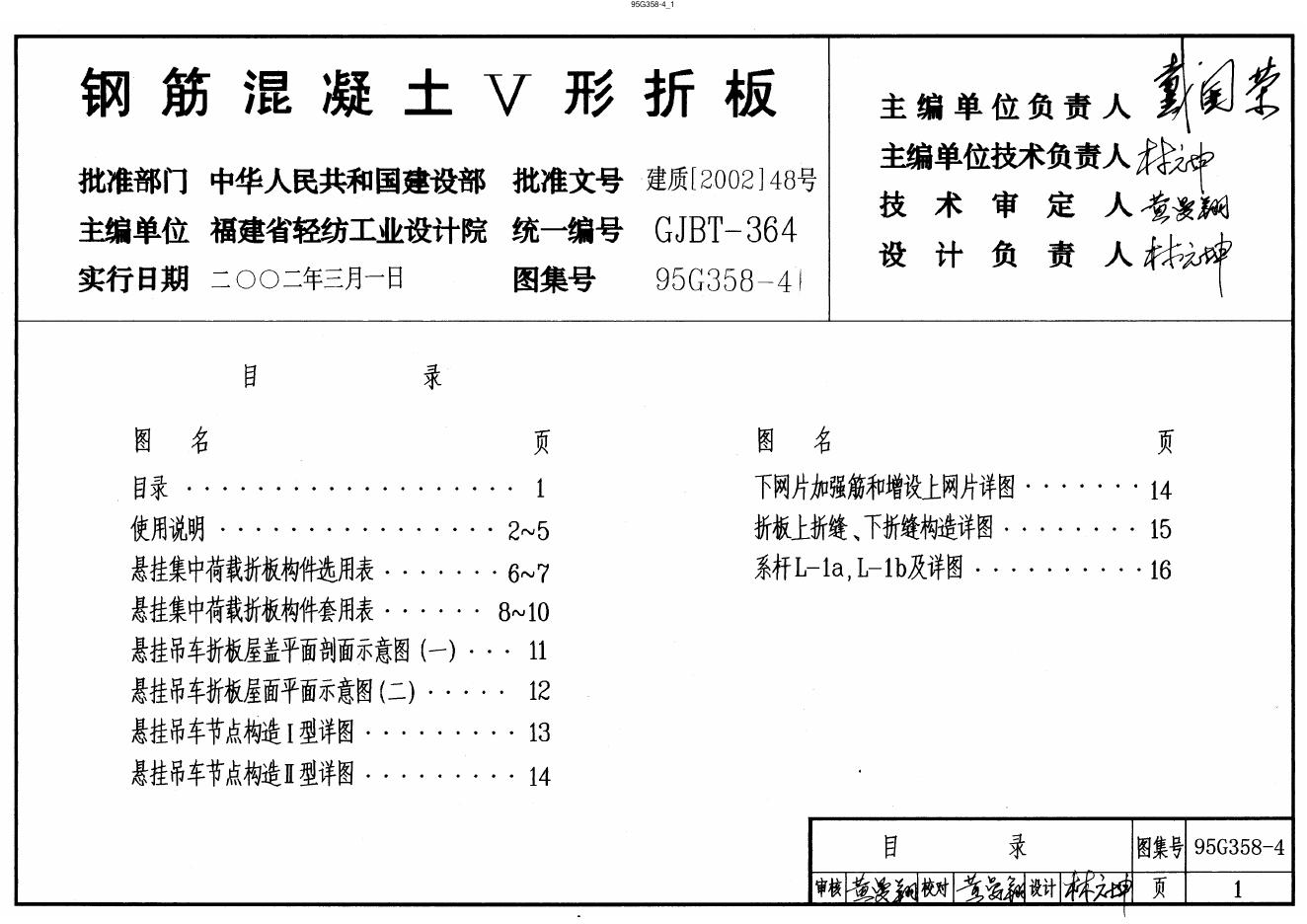 95G358-4 钢筋混凝土V形折板(悬挂集中荷载折板)图集