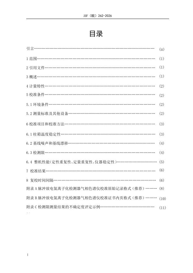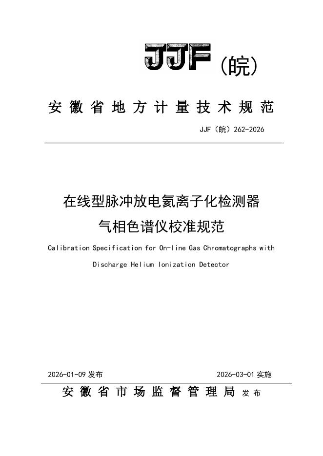 JJF(皖)262-2026 在线型脉冲放电氦离子化检测器在线气相色谱仪校准规