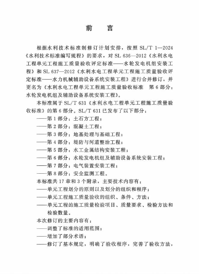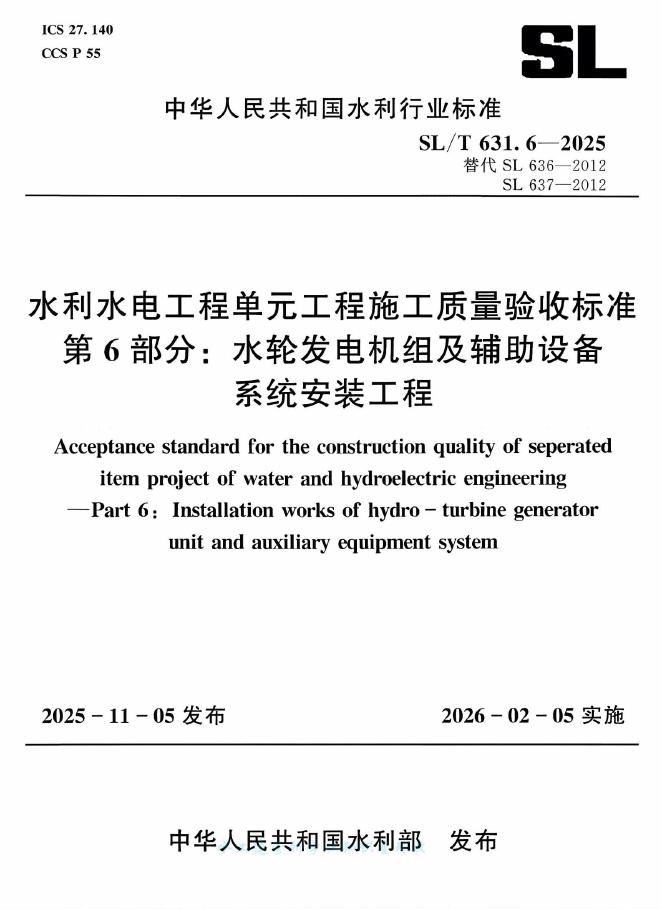 SL/T 631.6-2025 水利水电工程单元工程施工质量验收标准 第6部分:水轮发电机组及辅助设备系统安装工程