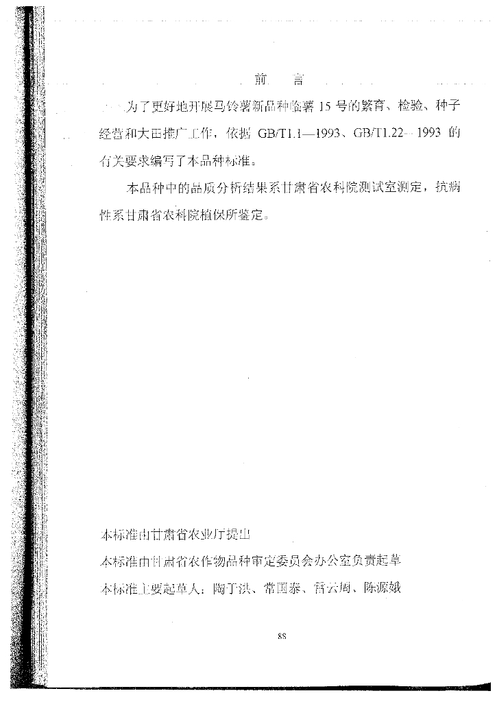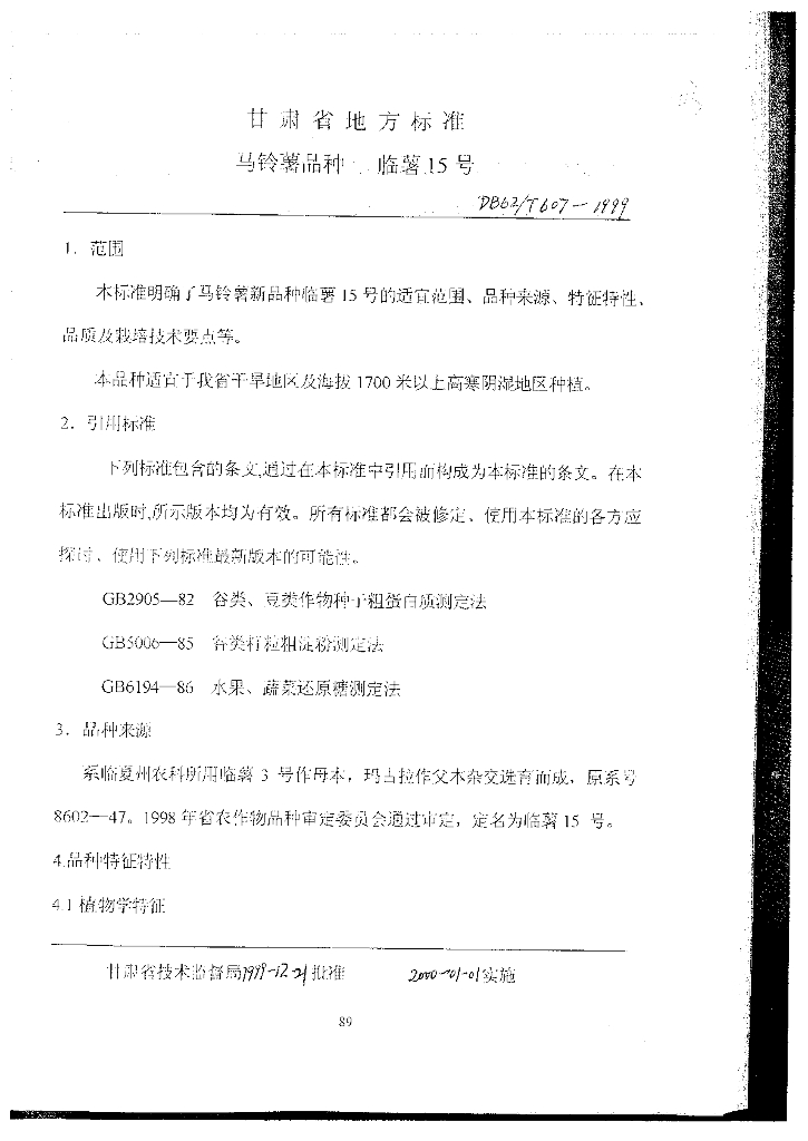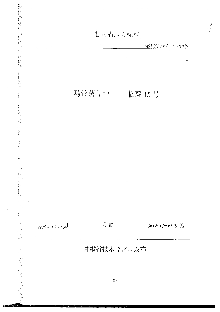 DB62/T 607-1999 马铃薯品种临薯15号