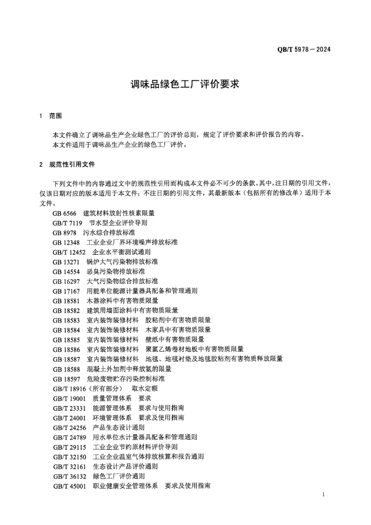 QB/T 5978-2024 调味品绿色工厂评价要求