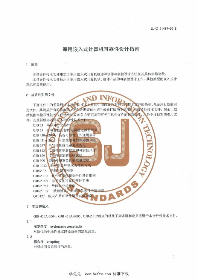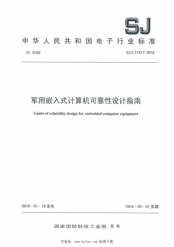 SJ/Z 21417-2018 军用嵌入式计算机可靠性设计指南