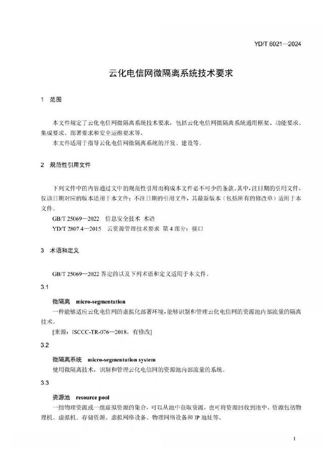 YD/T 6021-2024 云化电信网微隔离系统技术要求