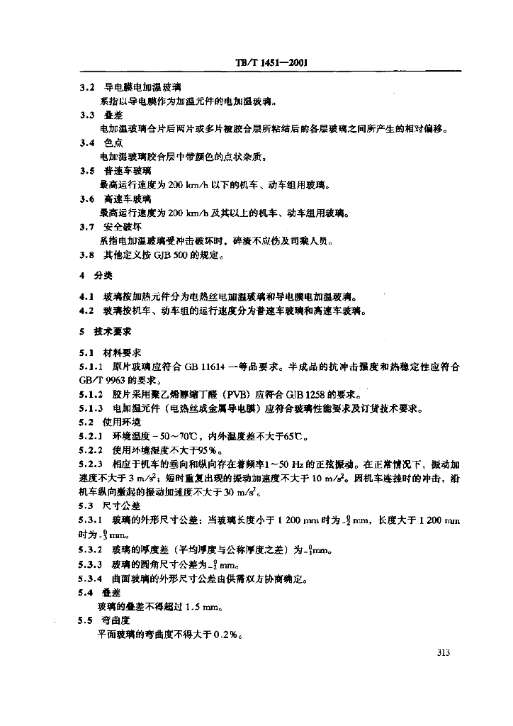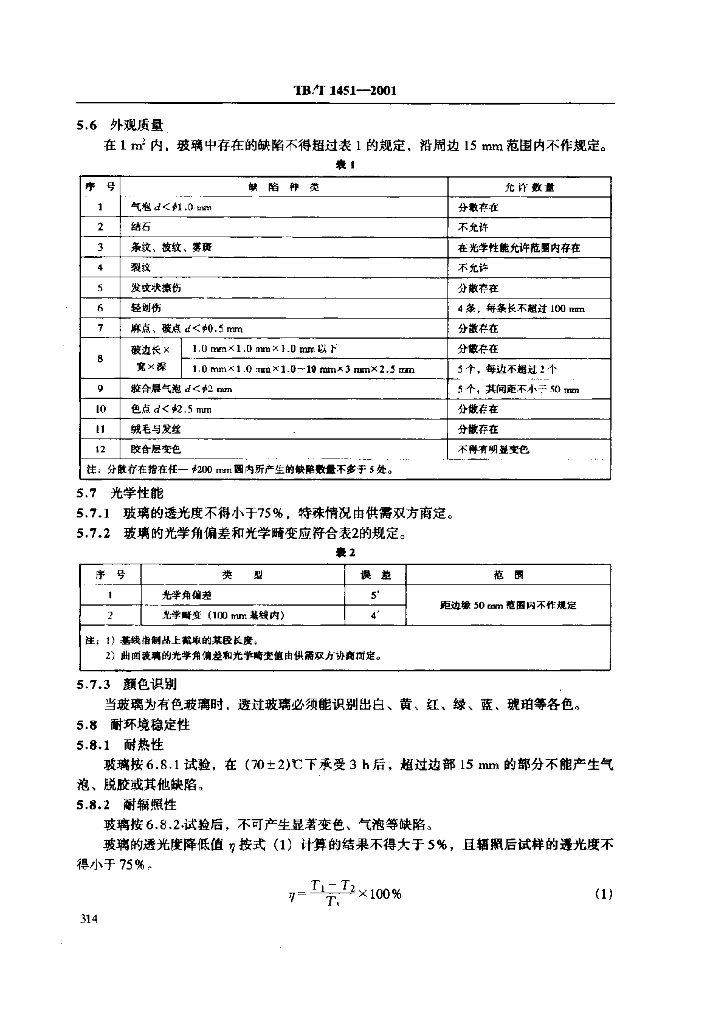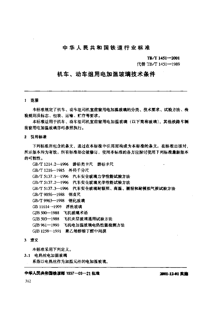 TB/T 1451-2001 机车、动车组用电加温玻璃技术条件