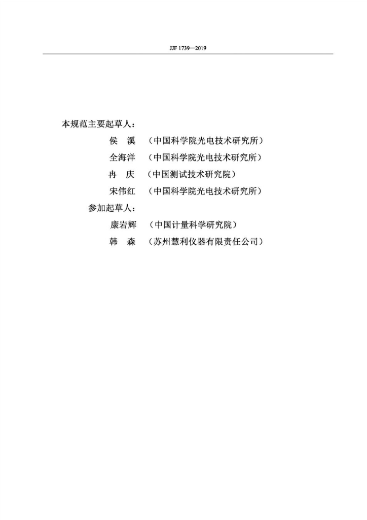 侯溪(中国科学院光电技术研究所)、全海洋(中国科学院光电技术研究所)、冉庆(中国测试技术研究院)、宋伟红(中国科学院光电技术研究所)、康岩辉(中国计量科学研究院)、韩森(苏州慧利仪器有限责任公司)