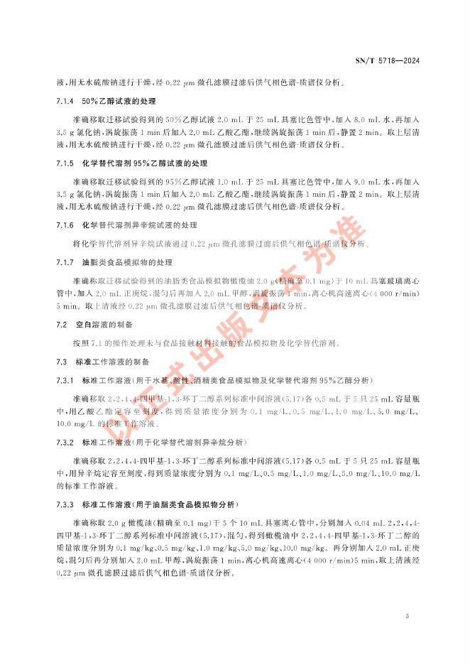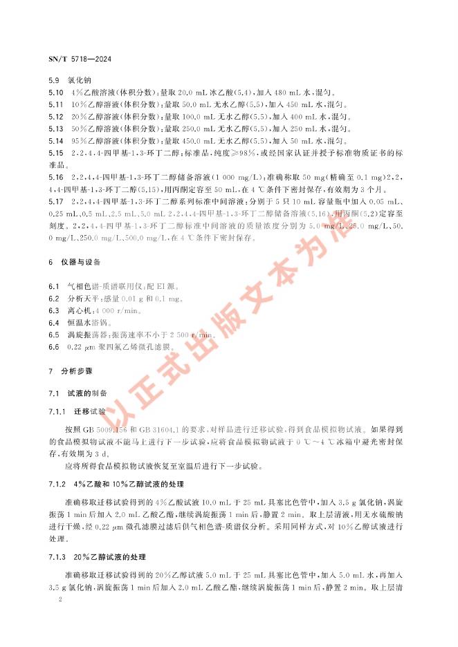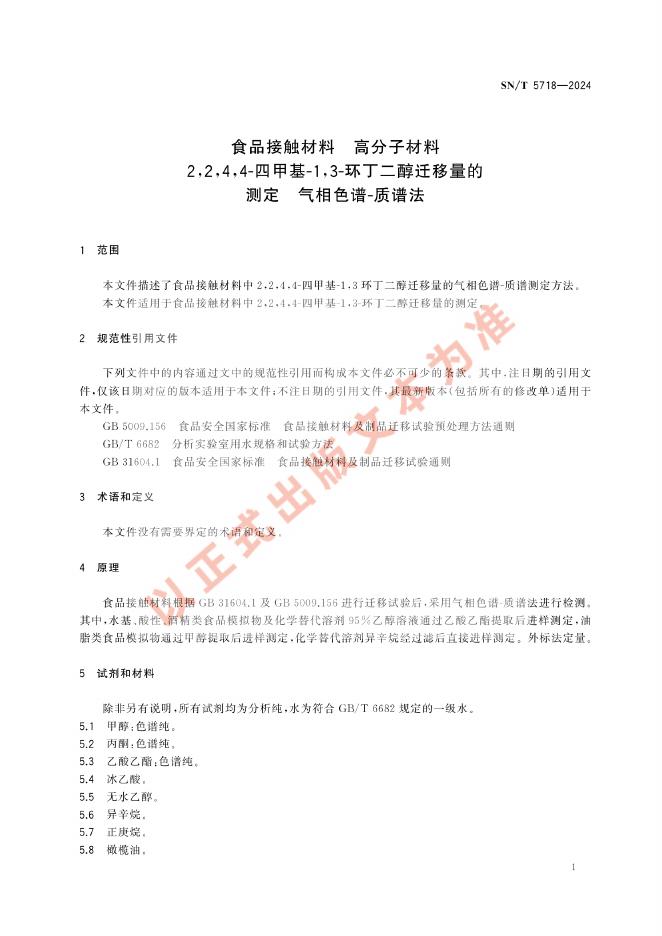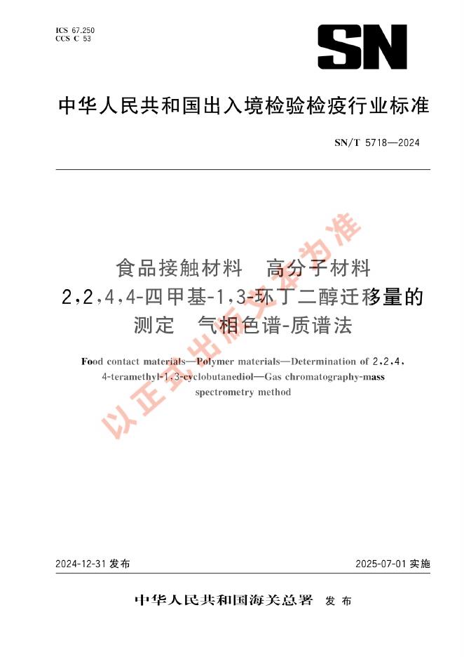 SN/T 5718-2024 食品接触材料 高分子材料 2,2,4,4-四甲基-1,3-环丁二醇迁移量的测定 气相色谱-质谱法