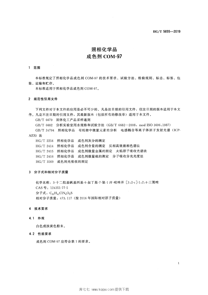 HG/T 5655-2019 照相化学品成色剂COM-97