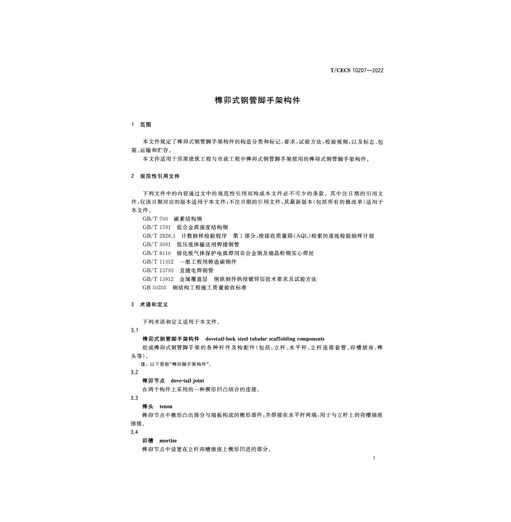 TCECS 10207-2022 榫卯式钢管脚手架构件