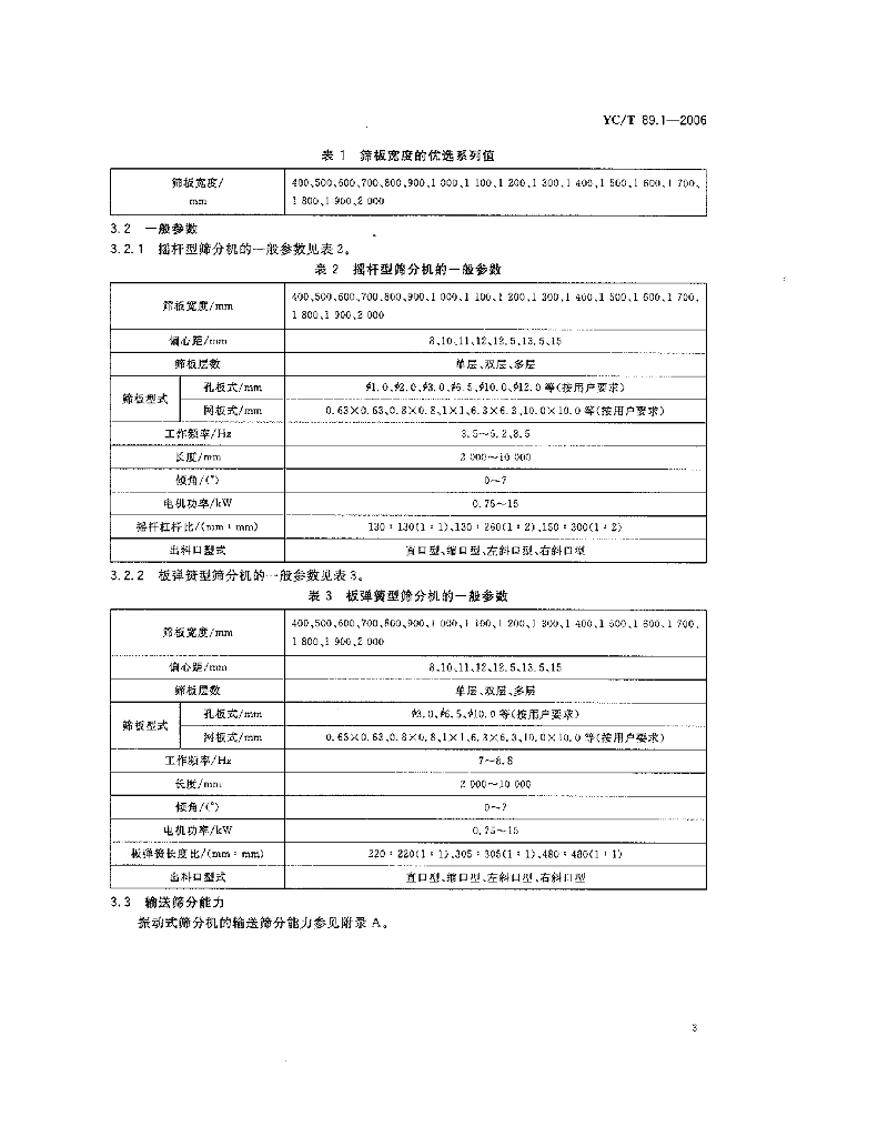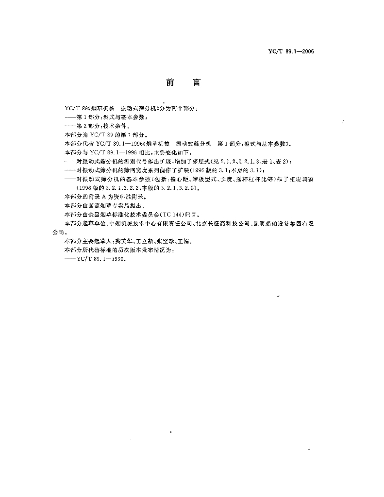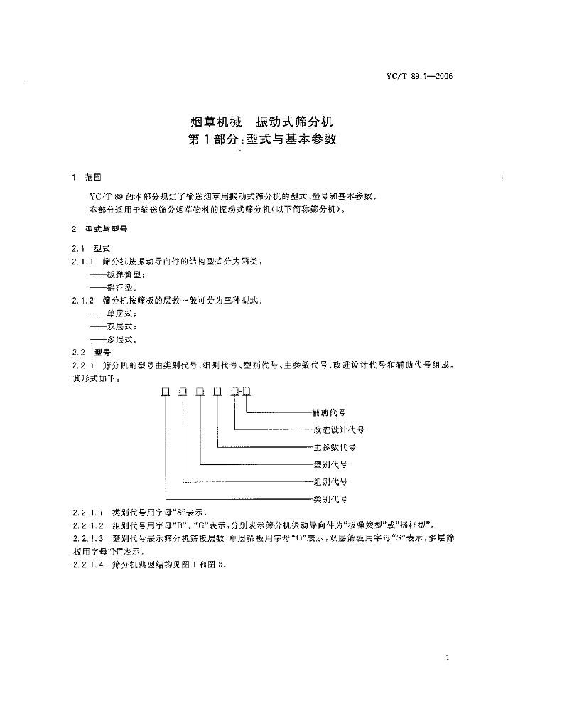 YC/T 89.1-2006 烟草机械 振动式筛分机 第1部分:型式与基本参数
