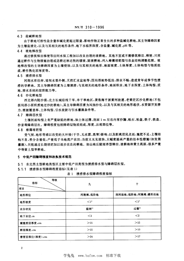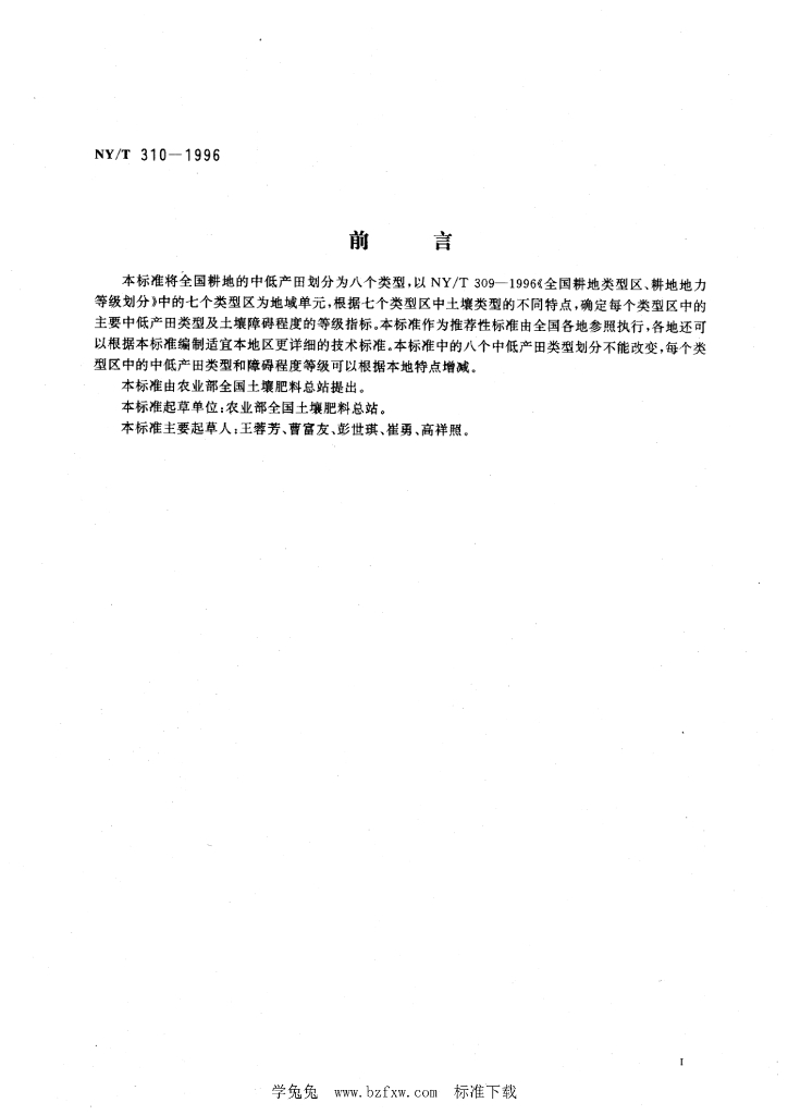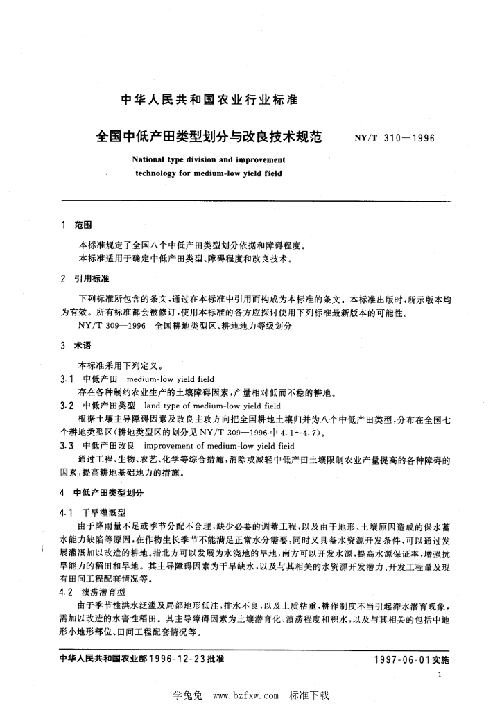NY/T 310-1996 全国中低产田类型划分与改良技术规范
