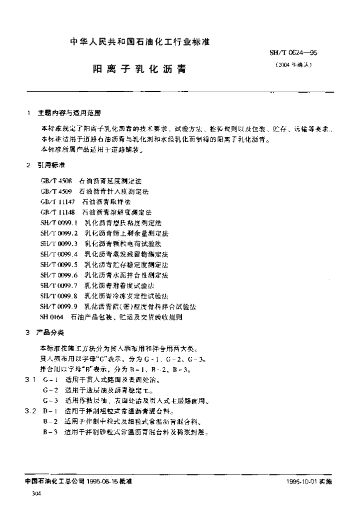 SH/T 0624-1995 阳离子乳化沥青