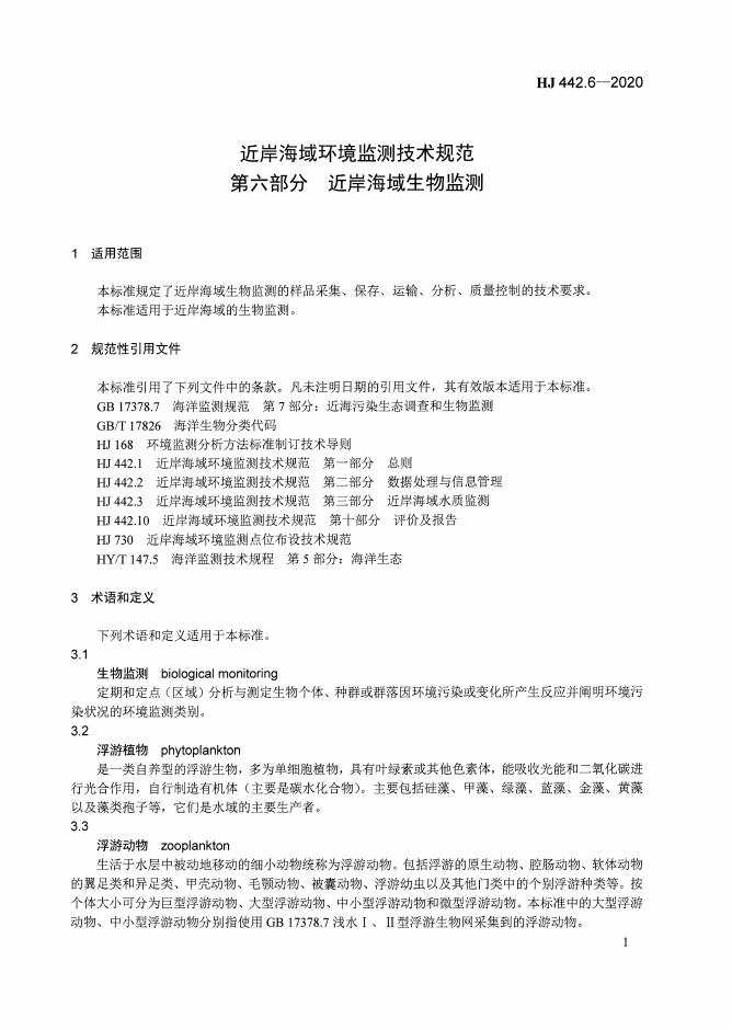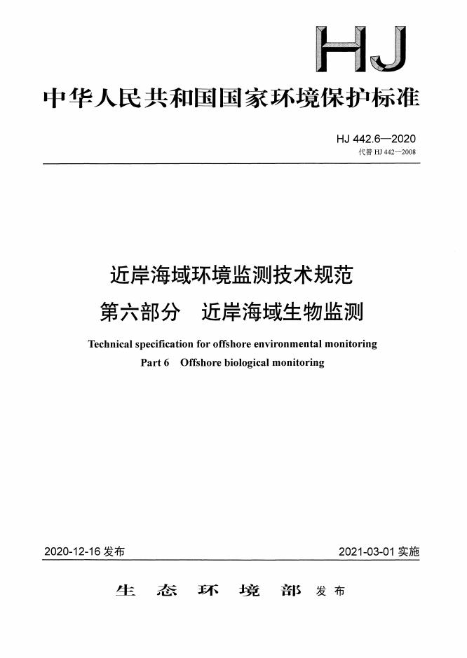 HJ 442.6-2020 近岸海域环境监测技术规范 第六部分 近岸海域生物监测