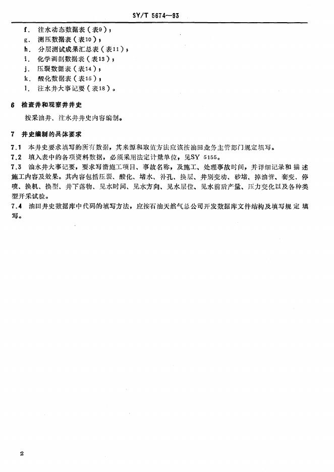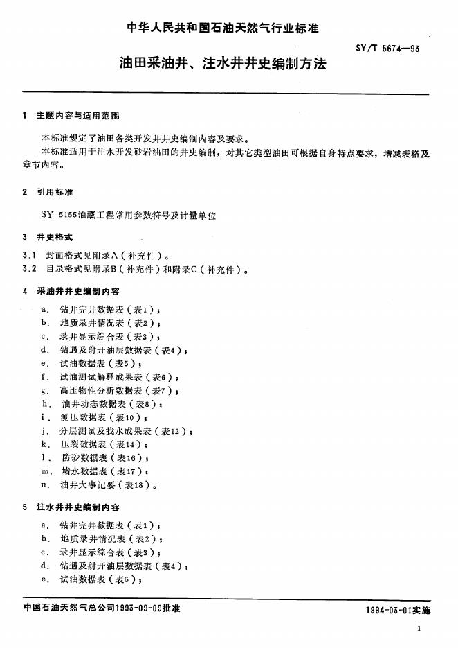 SY/T 5674-1993 油田采油井、注水井井史编制方法