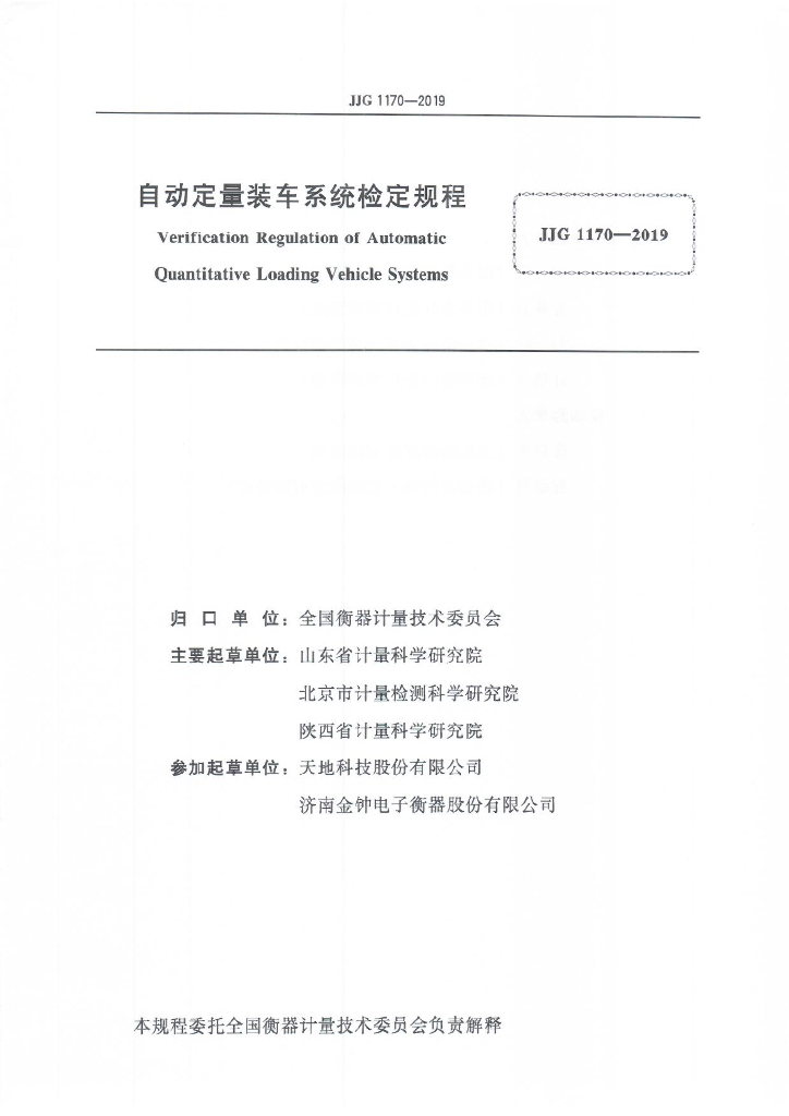 山东省计量科学研究院、北京市计量检测科学研究院、陕西省计量科学研究院、天地科技股份有限公司、济南金钟电子衡器股份有限公司